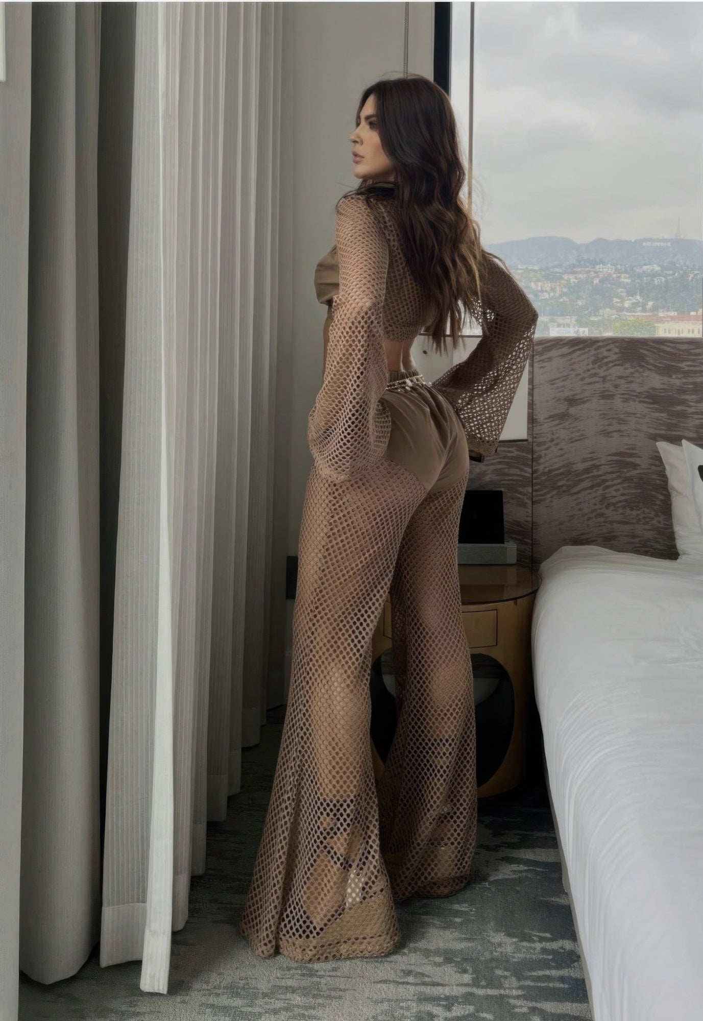 Turn heads poolside or at the beach with this Party Shimmer Cover-Up Set, designed for effortless glam and all-day comfort. Featuring a two-piece design, this set includes a relaxed-fit top and wide-leg pants made from a quick-drying, crochet-knit fabric that glimmers with subtle shimmer. The elasticized high-rise waistband ensures a secure yet flexible fit, while the soft stretch adds comfort and ease of movement. Lightweight and breathable, it’s the perfect layering piece over swimwear or styled for beachside lounging and resort-ready moments.