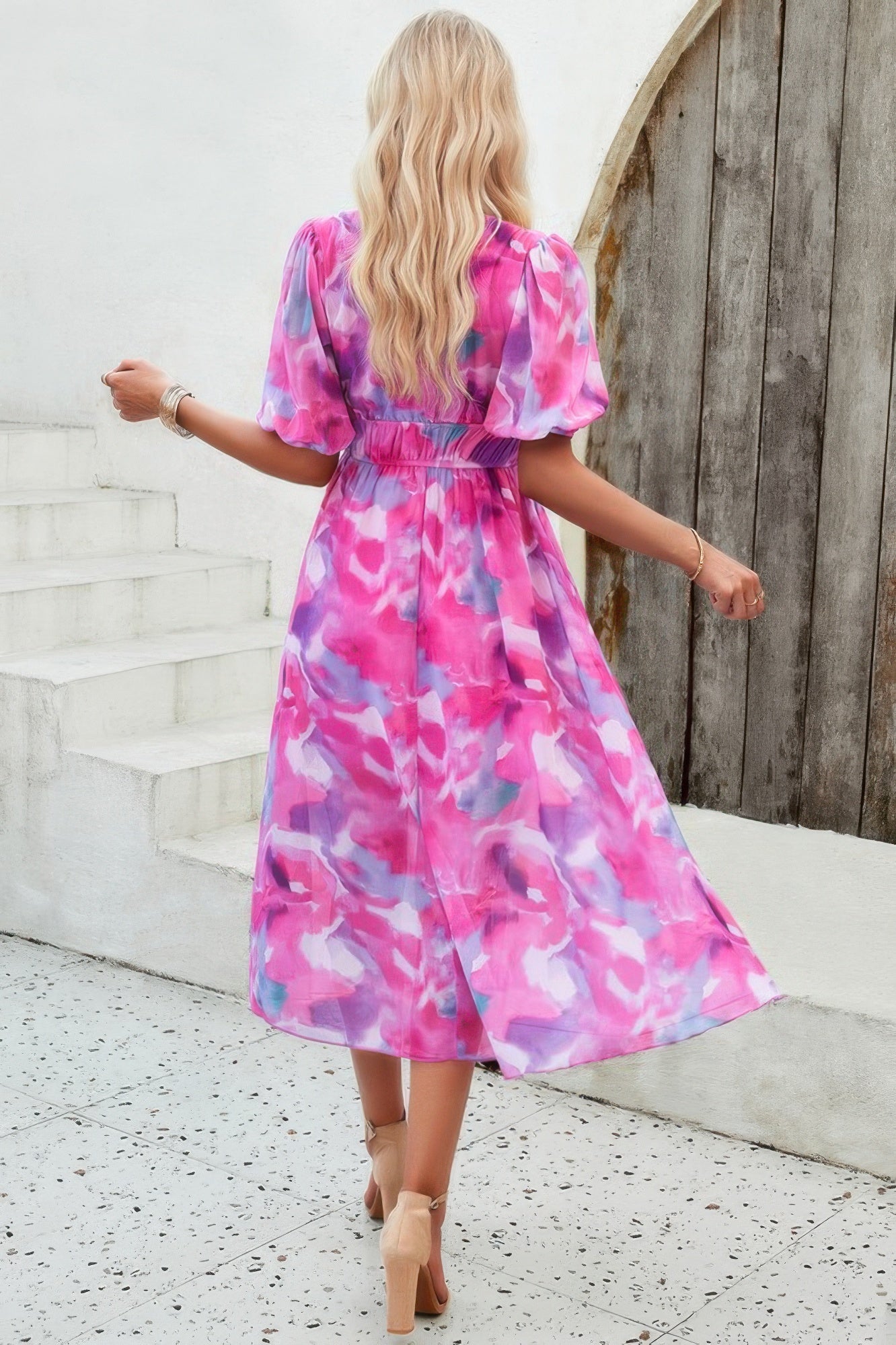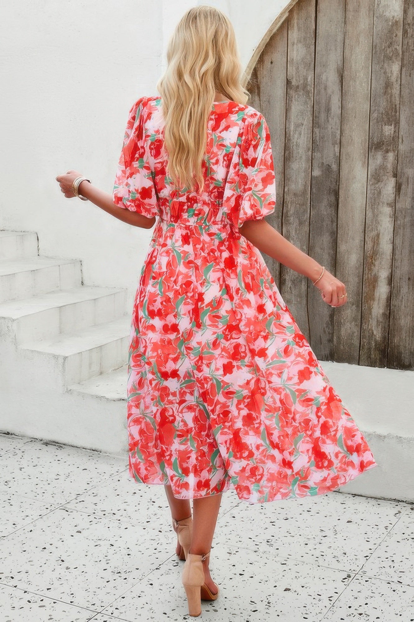 This floral V-neck puffed sleeve high waist dress is a romantic piece that brings a touch of elegance to your everyday style. Crafted from 100% polyester, it’s lightweight and flowy, ensuring comfort and easy movement. The V-neckline flatters your décolletage, while the puffed sleeves and high waist detail add a delicate, feminine touch. Perfect for daytime outings, vacations, or casual gatherings, this dress can be easily dressed up or down for any occasion. Pair it with your favorite sandals or heels to complete the look.